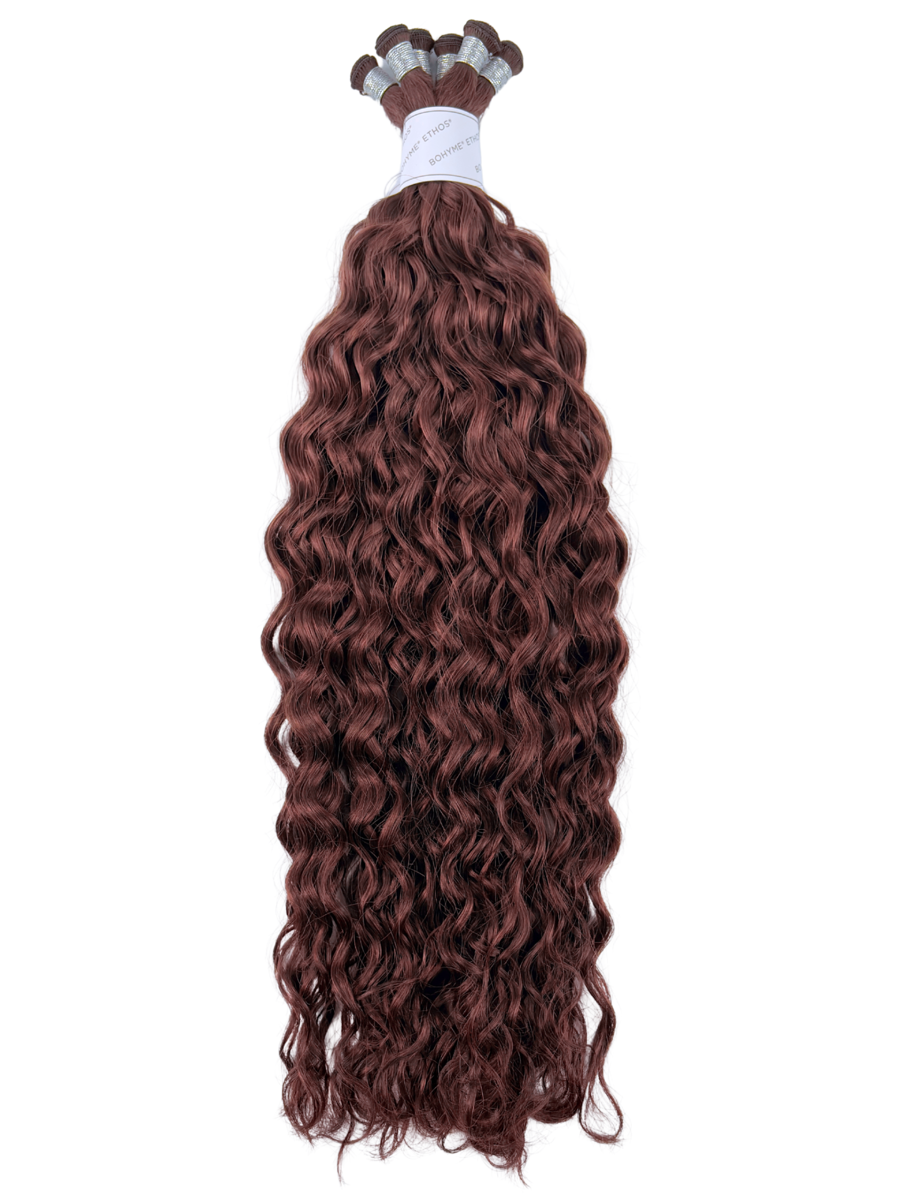 Bohyme Hand Tied Weft creation process takes 3 to 5 days, hair is hand-sewn onto one continuous thread and knotted securely to prevent shedding. Highly flexible, our wefts will not cause lumps at the crown or stick out from the regrowth of one's natural hair. Each 10- 12 inch weft is designed to be folded over itself at the ends instead of trimmed. Trimming the weft will cause the weft to unravel or shed.